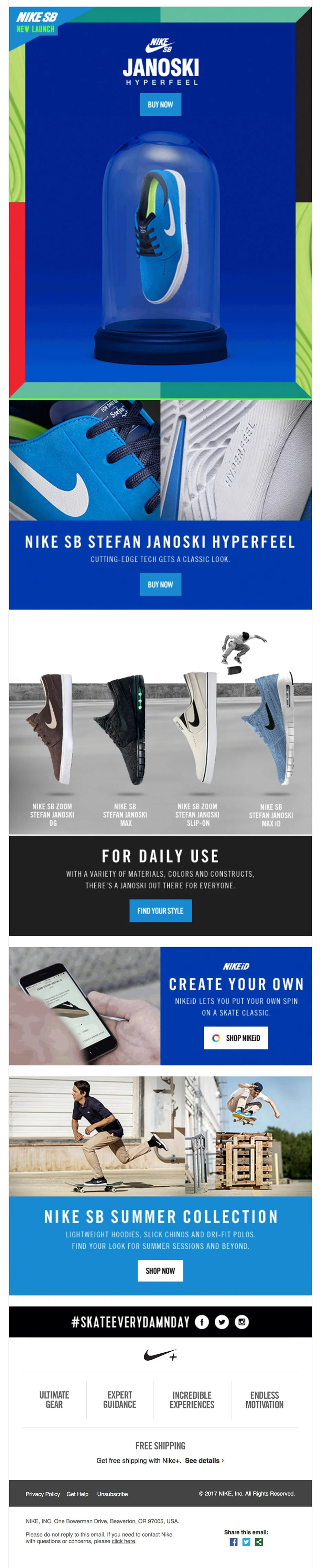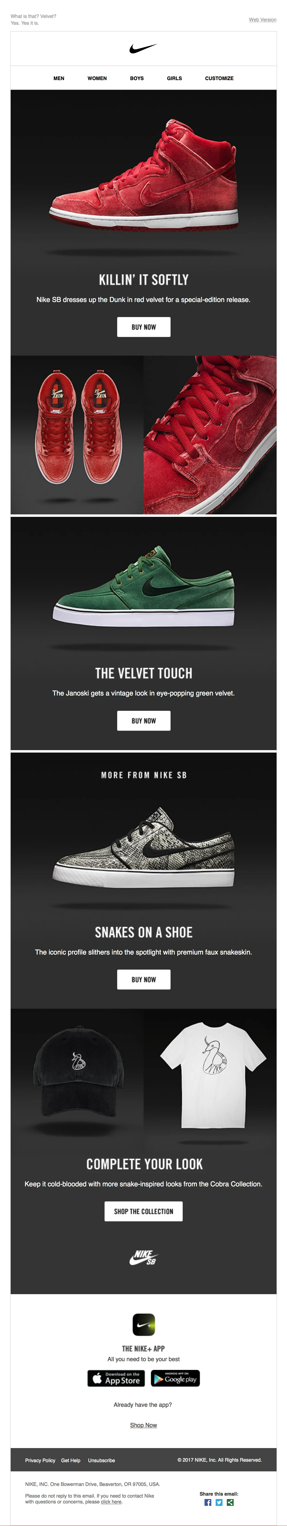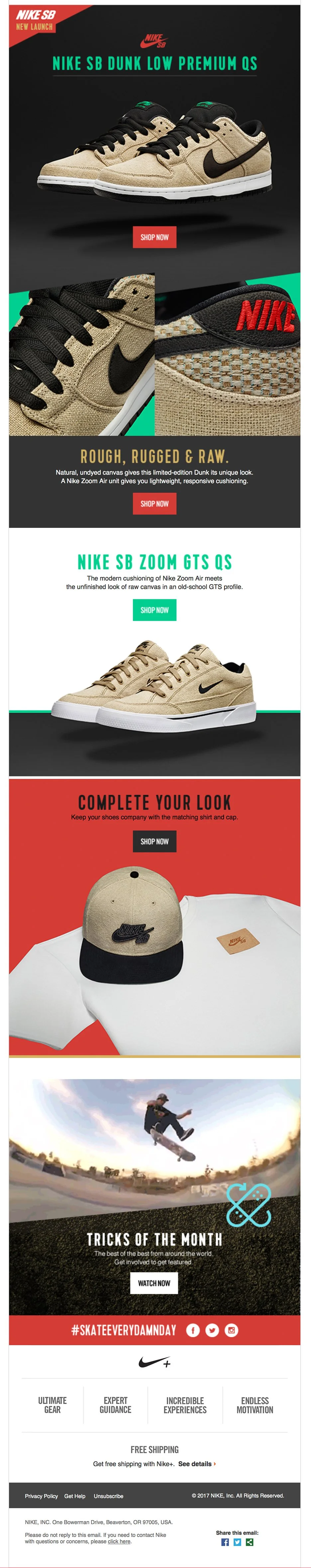 Owned Nike SB’s internationally segmented e-commerce email program as the brand’s Global Digital Brand Manager. From macro planning and strategy to micro detailing of copy and design, I ensured all creative and strategic standards were met. With an open-rate 3x that of the company average (36% vs. 12%), the SB email program was seen as one of the most successful across all of Nike and a model for other categories.